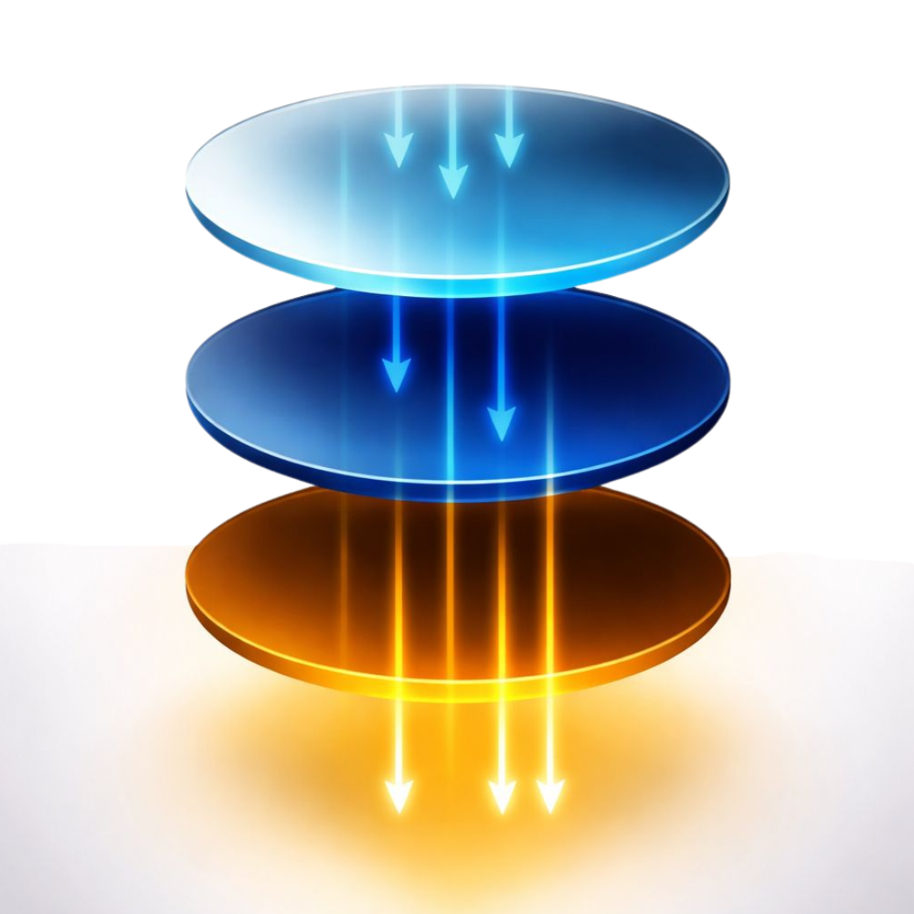 Blue light (380–500 nm): Filters out the most harmful wavelengths (400–450 nm) and reduces the total amount by about a third.